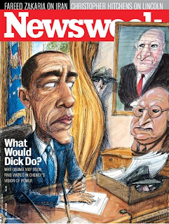 UPDATE III: Read Digby on this same issue. She focuses on the cover story in this week’s Newsweek by supreme torture apologist Stuart Taylor and Evan Thomas, which argues that Obama is going to have to be like Dick Cheney if he wants to keep us all safe. It urges that “the new crowd would do well to listen to Jack Goldsmith, formerly a Bush Justice Department official.” The Newsweek cover touts the article with this caption: ”What Would Dick Do?” That’s the new motto that the Beltway has for instructing Obama as to what he must ask if he is to keep us safe (h/t sysprog):