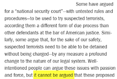 Whatever arguments one might want to make to support such a radical policy, the idea that federal courts are ill-equipped to adjudicate charges against members of Al Qaeda and other Terrorist groups is, as this new Report documents, patently and empirically false. Our court system has been developed over the course of several hundred years and has proven time and again that it is perfectly capable of convicting even the most dangerous Terrorists accused of the most brutal and complex crimes — or even those accused of nothing more than allegiance to an organization deemed to be a Terrorist group or an Enemy of the United States. The prime argument of progressives, Democrats and other Bush critics over the last eight years was that we should not alter our institutions and system of justice in the name of the War on Terror. That principled argument is every bit as true now as it was back then.