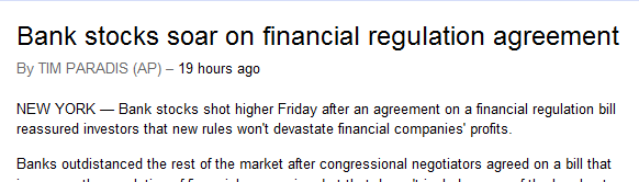 UPDATE: Speaking of the financial reform bill, this, too, is a revealing headline, from AP: