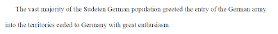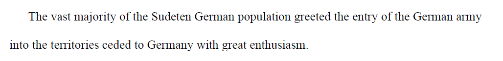 It’s difficult to find an invasion in history that wasn’t supported by at least some faction of the invaded population and where that same self-justifying script wasn’t used. That’s true even of the most heinous aggressors. Many Czech and Austrian citizens of Germanic descent, viewing themselves as a repressed minority, welcomed Hitler’s invasion of their countries, while leaders of the independence-seeking Sudeten parties in those countries actively conspired to bring it about. Did that make those German invasions justifiable? As Arnold Suppan of the University of Vienna’s Institute for Modern History wrote of the German invasion of Czechoslovakia (click on image to enlarge): And, of course, German citizens were told those invasions were necessary and just in order to liberate the repressed German minorities. To be a bit less Godwin about it, many Ossetians wanted independence from Georgia and thus despised the government in Tbilisi, and many identified far more with the invading Russians than their own government; did that make the 2008 Russian assault on Georgia moral and noble? Pravda routinely cast the Soviet invasion of Afghanistan as one of protection of the populace from extremists. I have no doubt that one could easily find Iraqi Sunnis today who would welcome an invasion from Hamas or Saudi Arabia to liberate them from what they perceive (not unreasonably) as their repressive Shiite overlords; would Goldberg therefore recognize the moral ambiguity of that military action? If, tomorrow, China invaded Israel and changed the regime, there would certainly be many, many Palestinians who would celebrate; would that, in Goldberg’s view, make it morally supportable? Saddam himself, in FBI interrogations after he was captured, was insistent that many Kuwaitis were eager for an Iraqi invasion and that this justified his 1990 war; if he were right in his facutal premise, would that render his actions just?