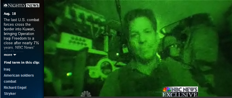 On August 18, NBC News anchor Brian Williams began his broadcast — shown live to West Coast viewers, something done only for very significant occasions — by excitedly declaring: ”It’s gone on longer than the Civil War, longer than World War II. And tonight, U.S. combat troops have pulled out of Iraq.” He immediately called in Chief Foreign Correspondent Richard Engel, who was exclusively embedded with the 4th Stryker Brigade. Engel excitedly announced that “the last American combat troops rolled” into Kuwait just moments ago.