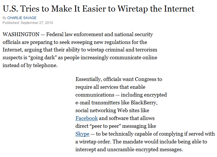 Thankfully, the U.S. is working hard to protect people around the world from “repressive governments” which are “capable of breaking into” the Internet and — even worse — use that power to invade people’s accounts and learn with whom they’re speaking and associating! And there’s a special prize for the first person who goes into the comment section to say that this is as a false equivalency because the U.S. doesn’t open fire on their own citizens (along those lines: if I were granted one wish from the Logic Genie, it would be the spread of the realization that to compare aspects of A and B is not to posit that A = B; blood and fire engines are both red, yet are not identical).