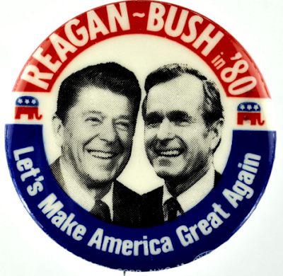 Trump has pretty much stolen all of his slogans from previous presidential races. As everyone knows, his ubiquitous “Make America Great Again” is lifted directly from Ronald Reagan’s 1980 campaign: