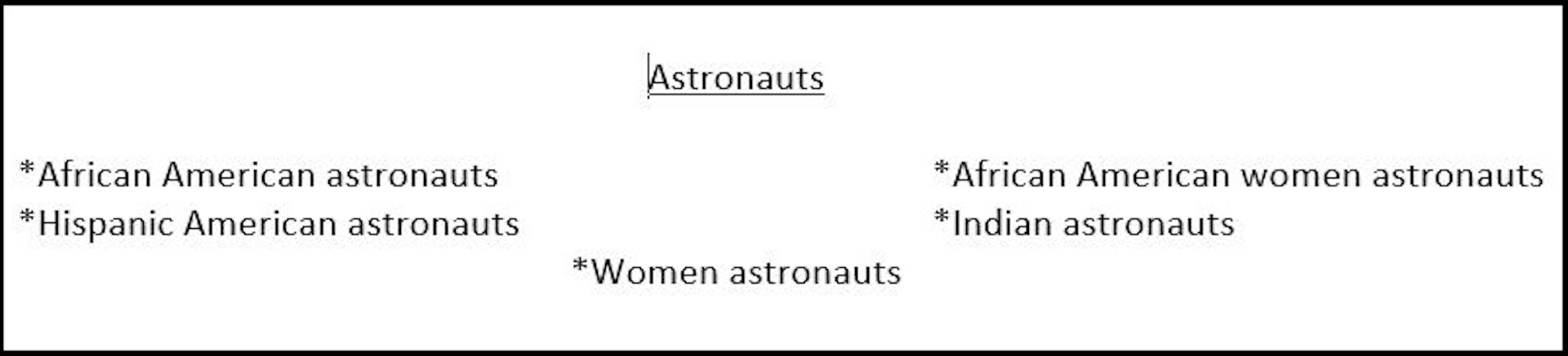 Without gender, race or geographic qualifications, “Astronauts” can be assumed to mean white American men in terms of library subjects.