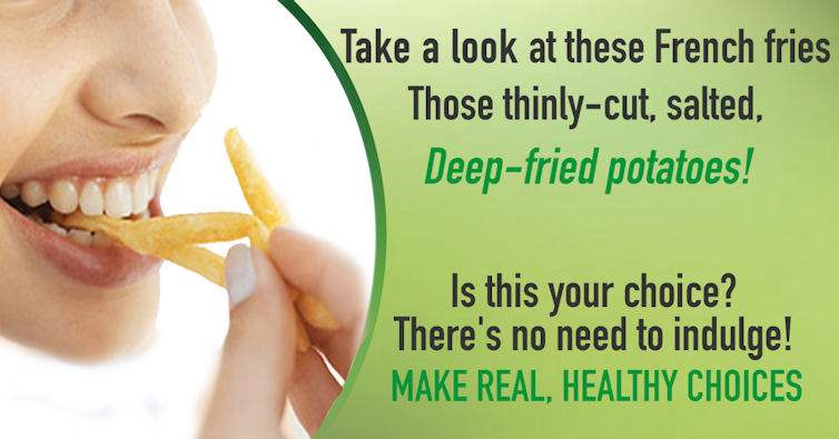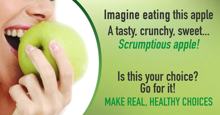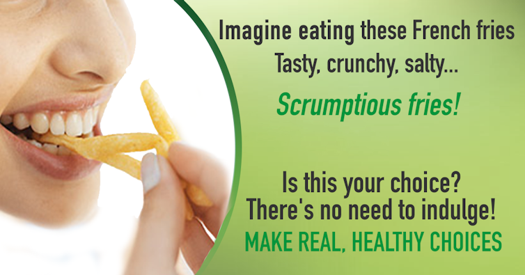 In a series of studies published in the Journal of Public Policy & Marketing, we found advertisements showing people eating junk food prompted people on a diet to eat less. While this may seem counterintuitive, these findings are in line with previous research on mental imagery. Recent studies show merely imagining ourselves carrying out actions or experiencing emotions activates similar neural networks to those linked with their actual performance or experience.
