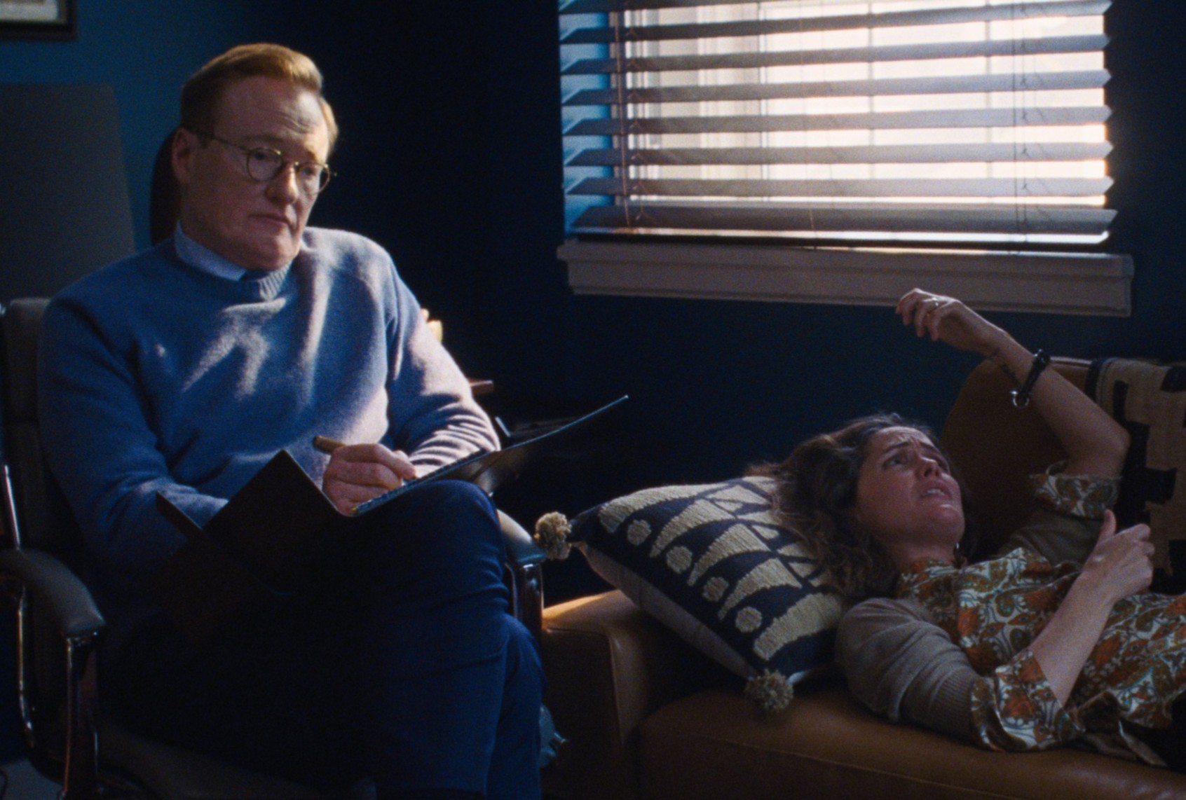 (A24) Conan O’Brien and Rose Byrne in “If I Had Legs I’d Kick You”