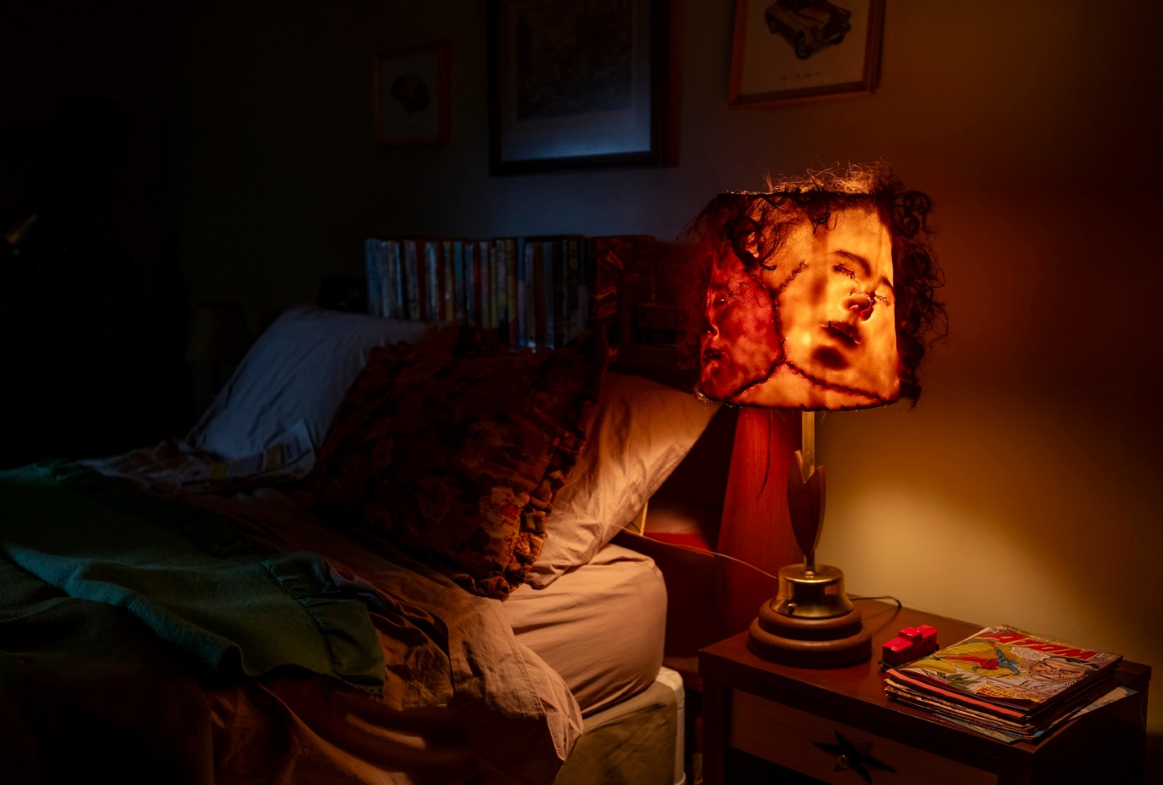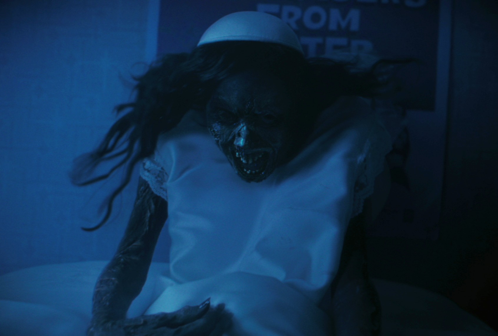 Predictably, those vessels break open so his grey flesh can supernaturally merge into a foul lump of distorted features and tentacles, binding Lilly while a creepy voice asks, “Got a kiss for daddy?” Lilly’s nightmare doesn’t involve the dead father consuming her, but its violative creepiness eats at you even so.