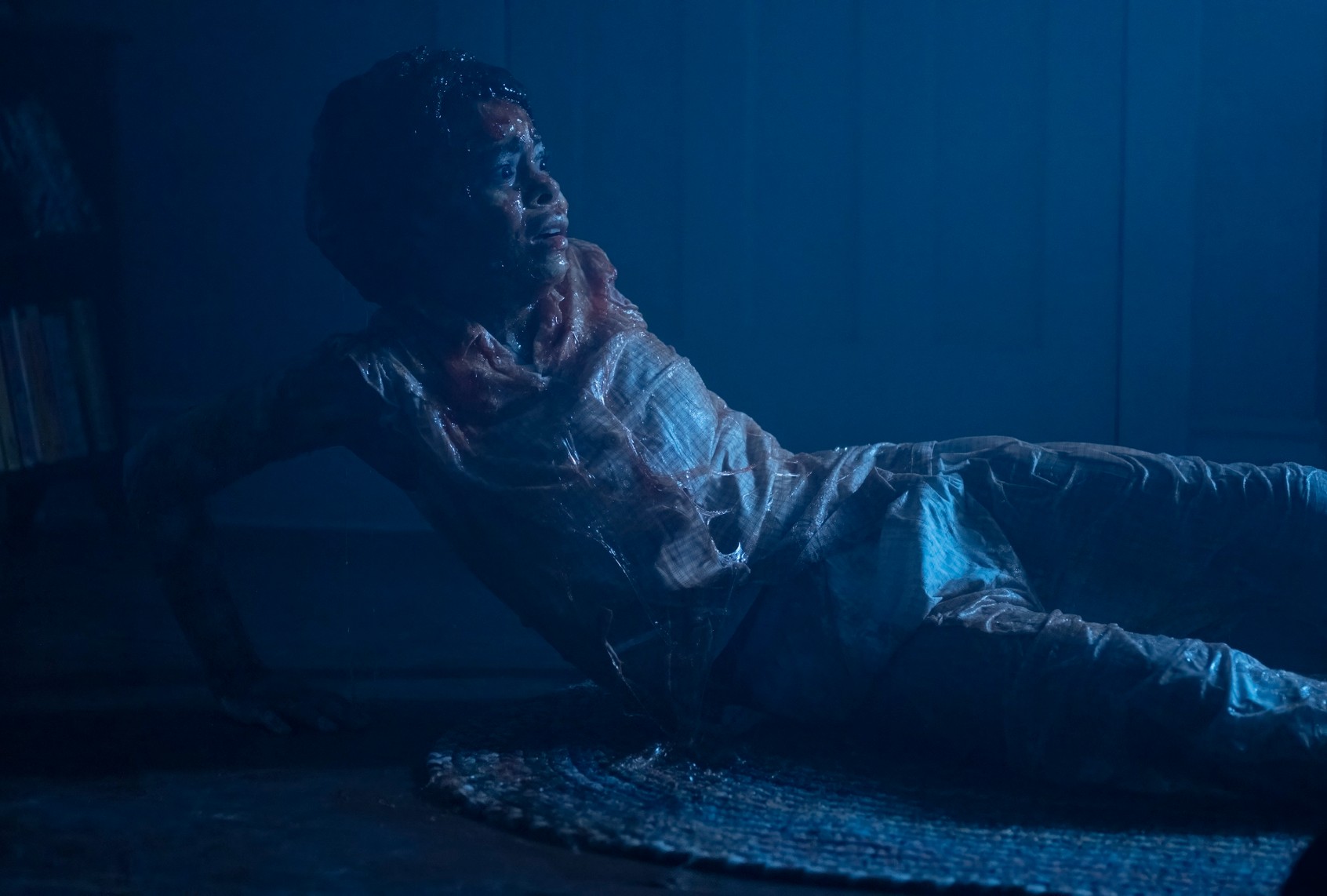 We tend to picture that as a peaceful state. But for Ronnie Grogan (Amanda Christine), who suddenly finds herself trapped inside a membrane prison, engulfed in fluid and drowning, it’s anything but. In one of the most horrifying sequences in the thriller’s second episode, “The Thing in the Dark,” Ronnie tries to find refuge from her worries by hiding in her bedroom, under the covers, only to be disturbed by the repetitive thump-thump of a loud heartbeat. Then the bedsheet turns pink and veiny, covering her with goo as she wildly scratches at it. Water rises around her, suffocating her screams until she claws her way free, sliding across the floor.