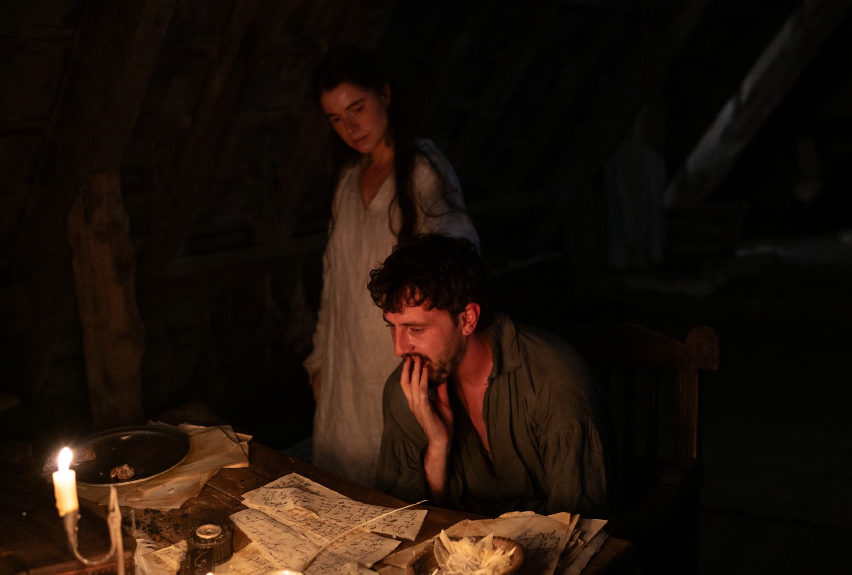 (Agata Grzybowska/Focus Features) Jessie Buckley as Agnes and Paul Mescal as William Shakespeare in “Hamnet”