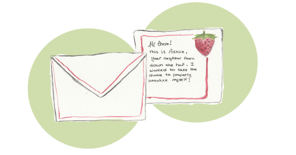 And a quick pep talk, if you need one: most neighbors are genuinely happy to meet you! A 30-second hello builds immediate rapport — it turns strangers into friendly faces and makes a building, block, or street feel safer and more human. You don’t need a long conversation. A simple “Hi, I’m Ashlie from down the hall—just wanted to say welcome” is more than enough.