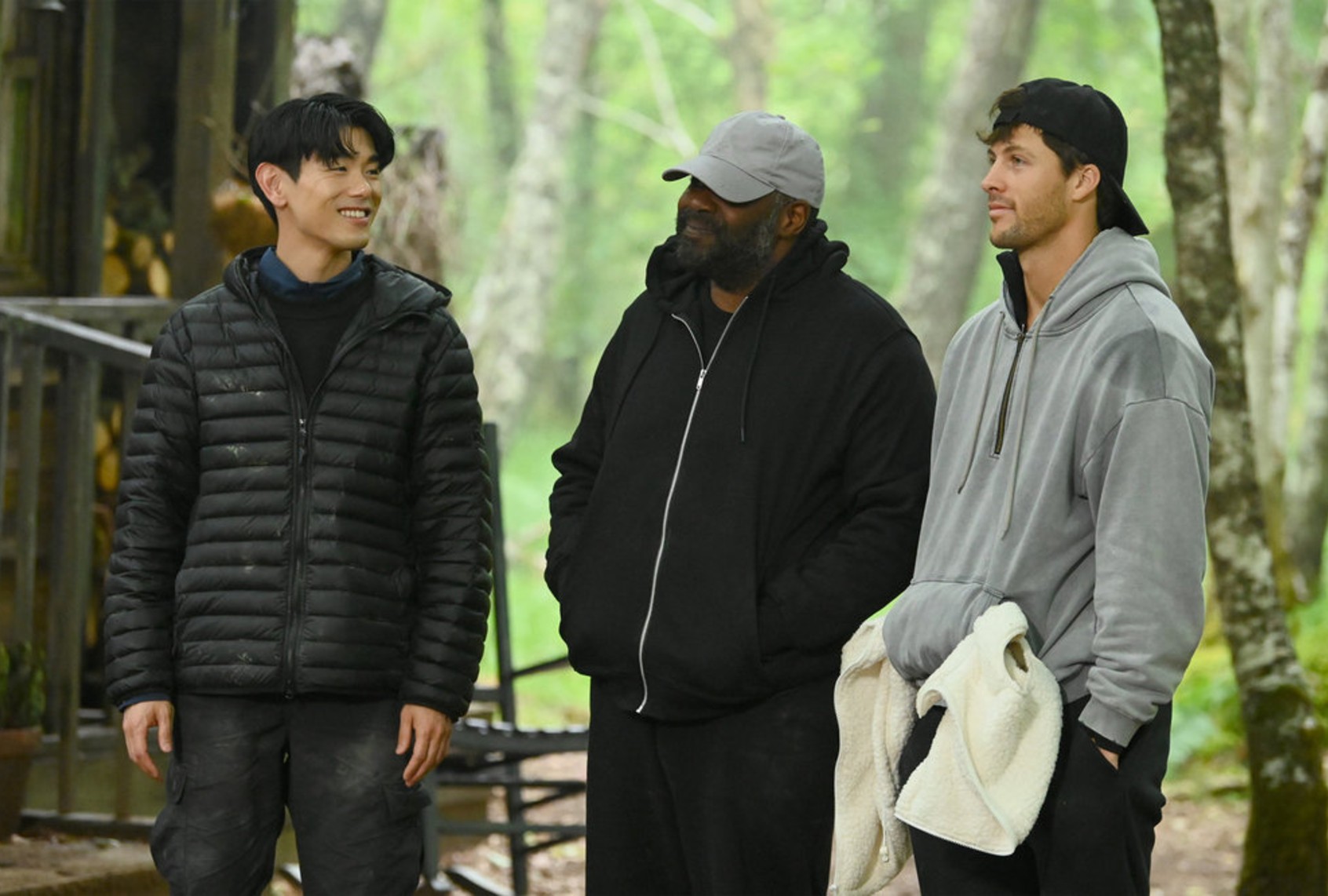 (Euan Cherry/Peacock) Eric Nam, Ron Funches and Rob Rausch in “The Traitors”