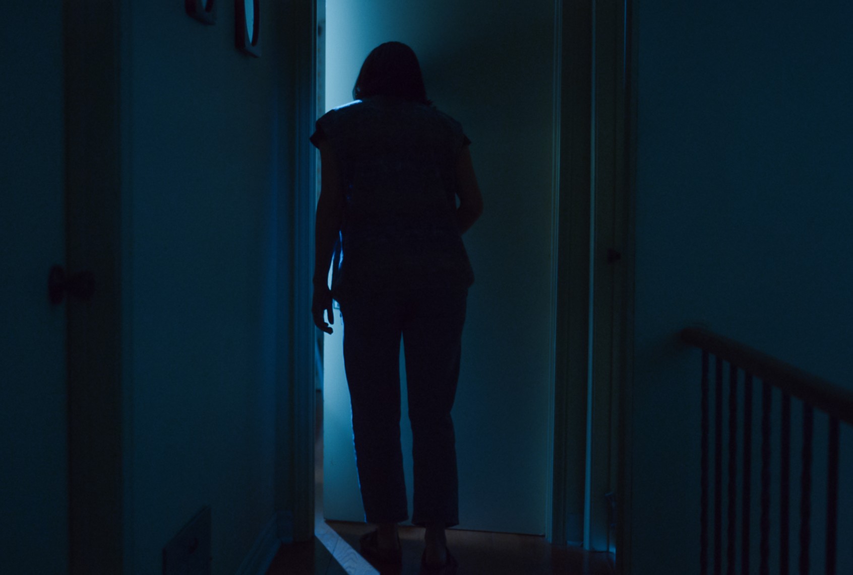 Tuason thrusts that sense one step further, framing Evy with plenty of negative space around her. While she records her show and listens to the files at her kitchen table, the camera stays focused on Evy in the foreground, shrouded by the dark foyer behind her. In these shots, Tuason practically dares the audience to look out from between their fingers, and peer into the black space, hunting for whatever figures might be skulking behind Evy, taunting her with their presence while her back is turned. The film makes fantastic use of its single shooting location, tucking horror into every last nook and cranny of this potentially haunted house. For most of its runtime, “Undertone” is a new, defining example of economical horror filmmaking.