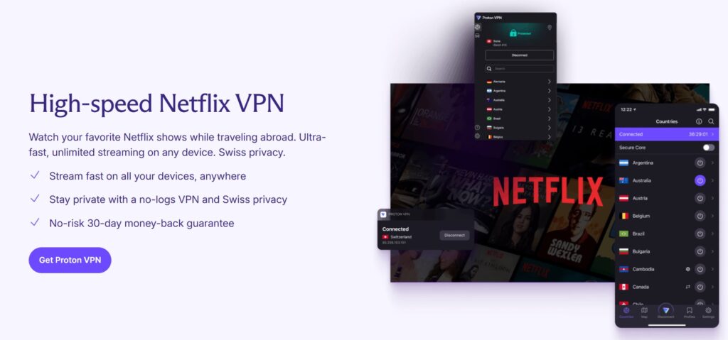 Is Proton VPN good for streaming? Yes—it reliably unblocks Netflix, Disney+, Hulu, Prime Video and BBC iPlayer. It doesn’t offer Smart DNS, but its streaming-optimized servers and WireGuard protocol help deliver consistent access across devices.