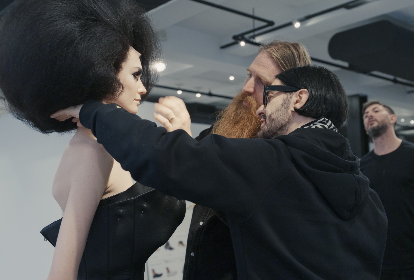 Slumped into folding chairs inside his New York studio, renowned designer Marc Jacobs and his brand’s creative director, Joseph Carter, ponder the mood of Jacobs’ Spring 2024 ready-to-wear collection. Jacobs and Carter had spent days stacking wigs onto more wigs, playing with cartoonishly large shapes from head to toe, trying to see what beauty and accessories might look best with the collections’ oversized garments. Behind the camera, Jacobs’ friend and occasional creative collaborator, Sofia Coppola, asks whether they’re favoring a serious look, or something more eccentric — in line with Jacobs’ reputation. “We’re leaning towards entertainment,” Jacobs says, before a wry smile creeps onto his face. “And joy.”