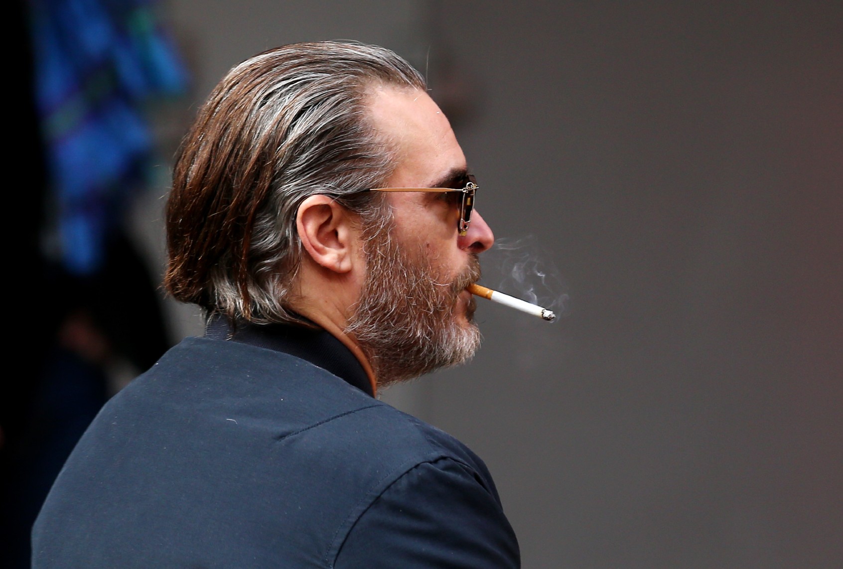 (Thomas Niedermueller/Getty Images) Joaquin Phoenix smokes a cigarette at a “Don’t Worry, He Won’t Get Far on Foot” photo call